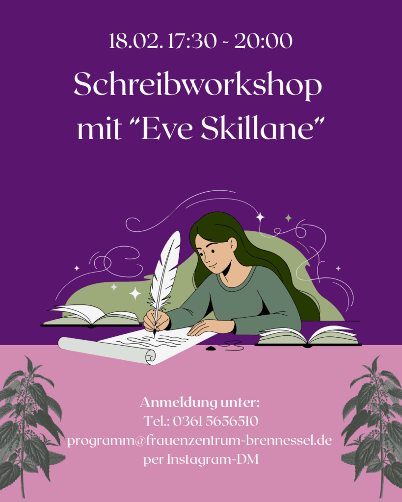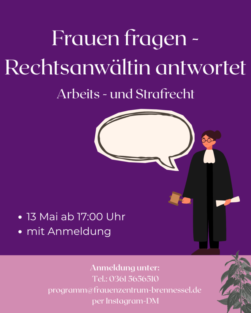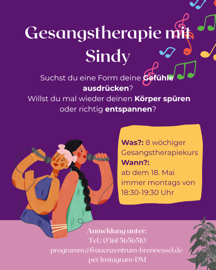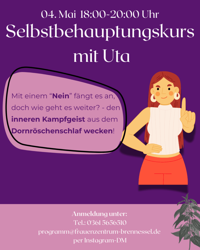 Für weitere Informationen und Fragen über unser Programm, erreicht ihr uns unter programm@frauenzentrum-brennessel.de oder 0361 5656510.