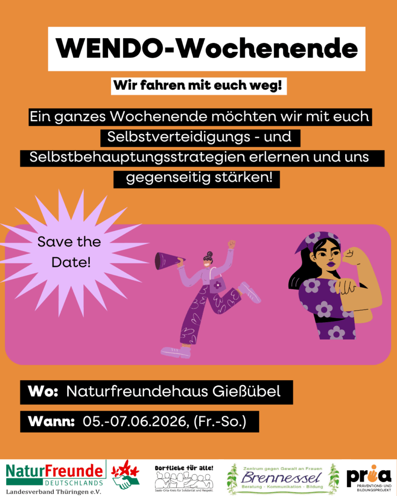 Ein ganzes Wochenende möchten wir mit euch Selbstverteidigungs – und Selbstbehauptungsstrategien erlernen und uns gegenseitig stärken! Wendo ist eine Technik zur Selbstverteidigung und Selbstbehauptung für Frauen und Mädchen weltweit. Es ist kein Kampfsport, sondern ein Präventionsprogramm gegen Gewalt. Das Programm stärkt die teilnehmenden Personen, damit sie selbstbewusster und selbstbestimmter durchs Leben gehen. Das Ziel liegt darin, einen Umgang mit bedrohlichen Situationen zu finden und gleichzeitig handlungsfähig zu bleiben.